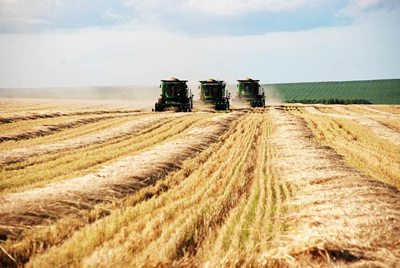 图为黑龙江垦区大西江农场职工驾驶收割机在收获小麦(2014年8月4日摄)。新华社发