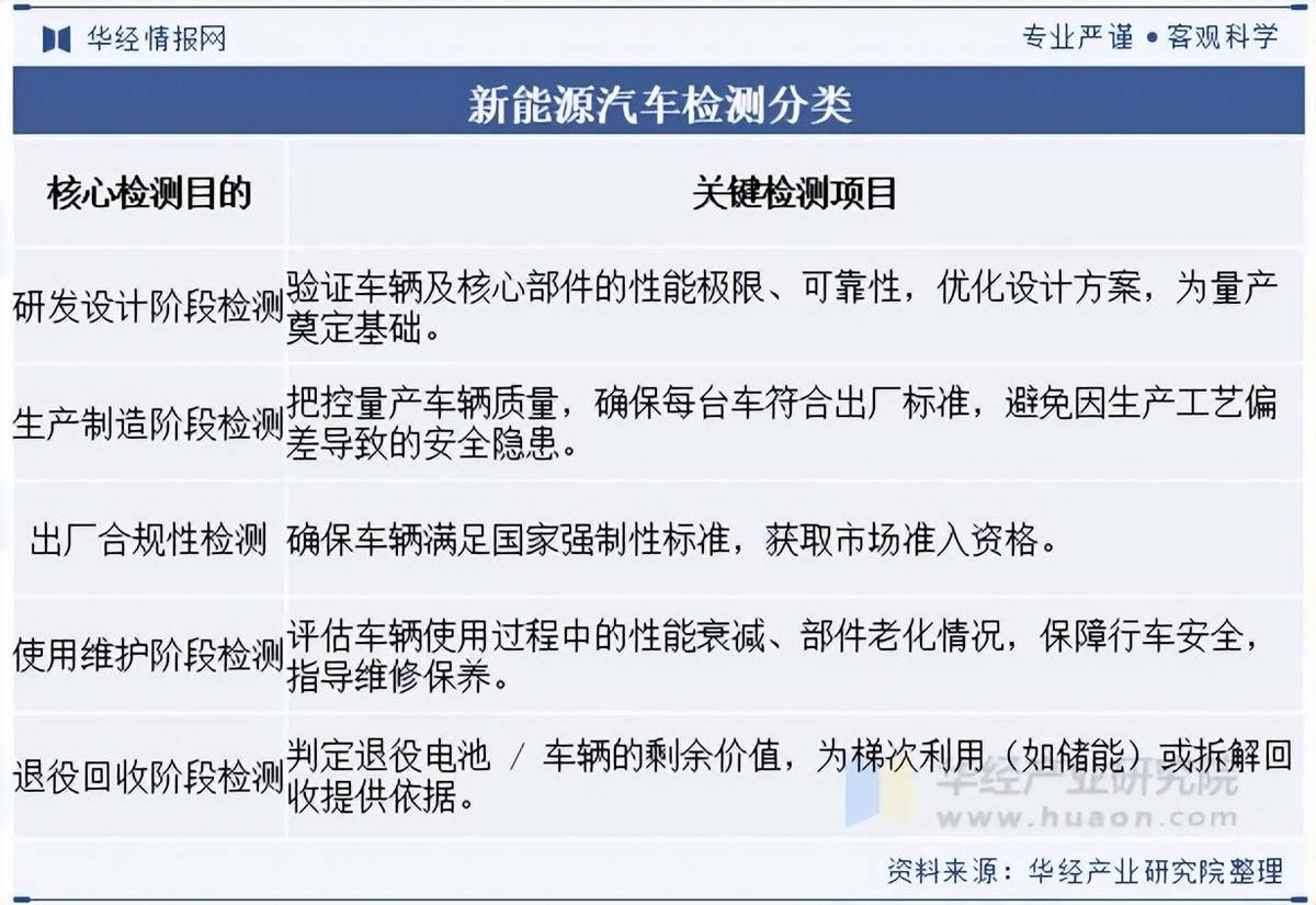 本文节选自华经产业研究院发布的《2025年中国新能源汽车检测行业分类、政策、产业链及下游分析》,如需获取全文内容,可进入华经情报网搜索查看。